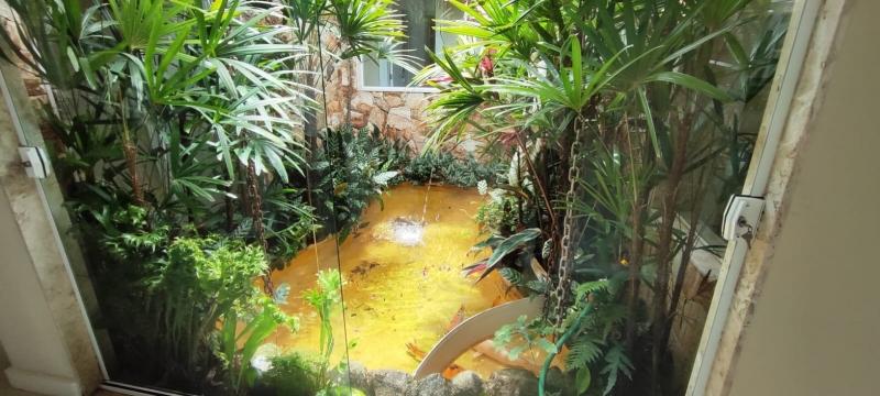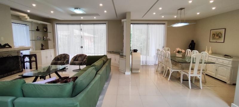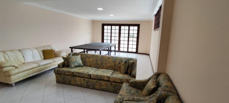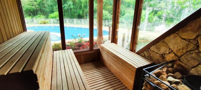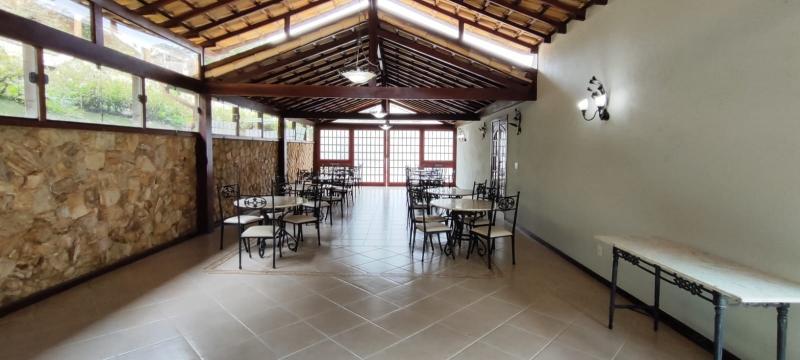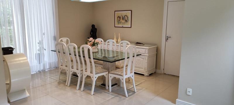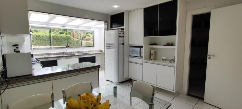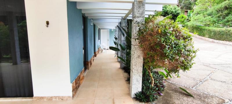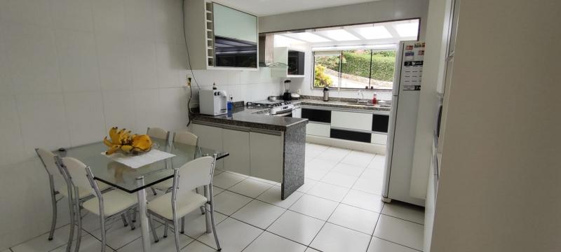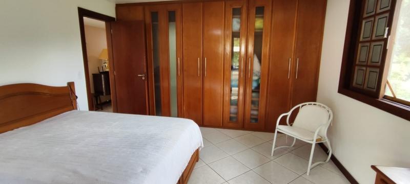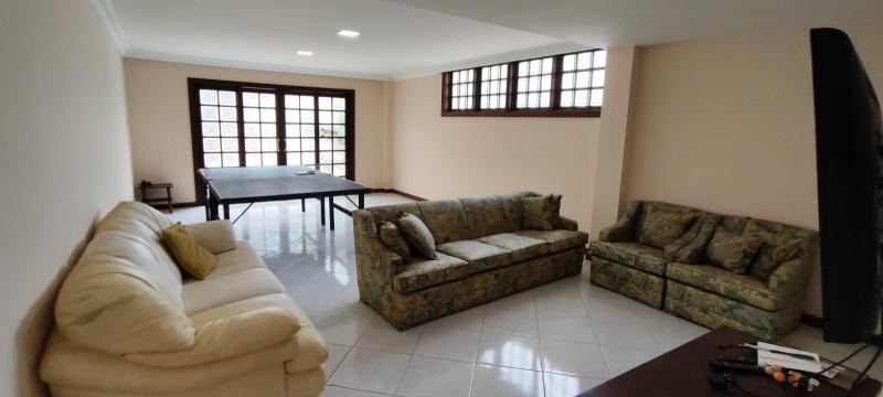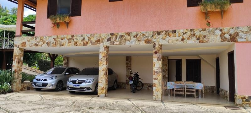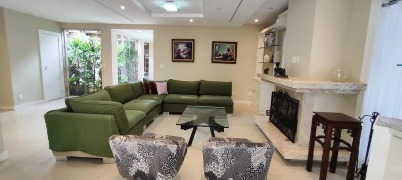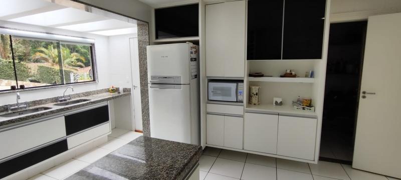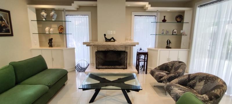 Casa Principal - Linear, totalmente mobiliada e decorada com extremo bom gosto - Salão amplo em 2 ambientes (Estar/Jantar), lareira, ampla varanda em L, jardim de inverno com fonte e lago com carpas, lavabo, 4 suítes, uma com closet e todas com armários embutidos, roupeiro, espaçosa copa-cozinha planejada, despensa, lavanderia, dependência completa podendo ser utilizada como escritório, lindo salão de festas montado, espaço gourmet com churrasqueira, forno de pizza e fogão à gás, sauna, piscina com hidro, 2 banheiros, lavabo, quarto de guardados e estacionamento para vários carros.