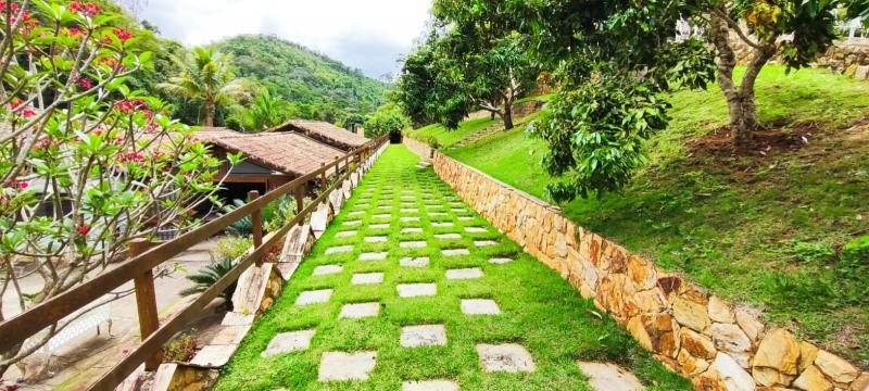 - Amplo jardim gramado por toda extensão do sítio com paisagismo.