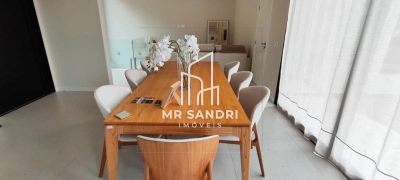 1º Pavimento - Hall de entrada com porta pivotante até o teto com fechadura eletrônica (senha e/ou tag), lavabo, sala de estar, sala de jantar, cozinha planejada com ilha integrada com área social e externa, onde se encontra banheiro, academia (reversível para quarto ou home office), lavanderia, piscina com hidromassagem com vista livre e deslumbrante e garagem para 2 carros grandes e motos. Todo pavimento com pé direito de 3,5 m.